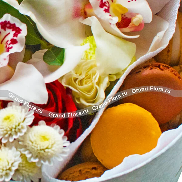 Коробочка нежности - коробка с розами и макарунс